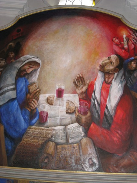Dauerregen und Temperaturen, die den Herbst ahnen ließen, konnte die Begeisterung der Pfarrer und hauptamtlichen Mitarbeiterinnen und Mitarbeiter des Dekanates Würzburg rechts des Mains auf ihrer Spurensuche nicht bremsen. Ihr jährlicher Dekanatsausflug am 23. Juni 2009 führte sie ins Ellwanger Land, dem Lebensmittelpunkt des Künstlerpfarrers Sieger Köder. Irmgard Zeifang erschloss mit hoher Kompetenez, schwäbischem Witz und viel Charme die einzelnen Werke des großen Sohnes der Region. Angefangen in der Ellwagner Heilig-Geist-Kirche über die Michaelskapelle in der Basilika St. Veit bis hin nach Rosenberg mit dem bekannten Altar und hoch hinauf nach Hohenberg. In beiden Dörfern wirkte Sieger Köder lange Jahre als Pfarrer und hinterließ dort markante Spuren. Wieder in Franken angekommen, schien sogar die Sonne; mit einem Abendessen in Uffenheim endete der gemeinsame Tag.