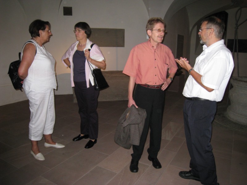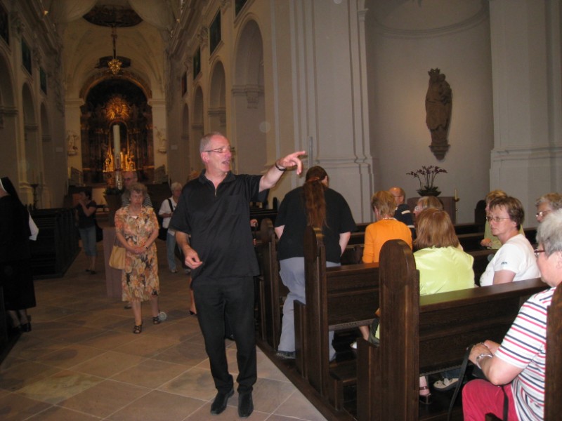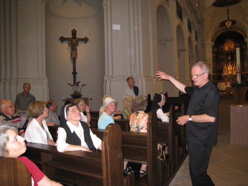 Einen "Blick ins Neumünster" werfen konnten 85 Kommunionhelfer, Lektoren und Gottesdienstbeauftragte bei einer Führung mit Domkapitular Dr. Jürgen Lenssen am Mittwochabend, 22. Juli 2009. Nach umfangreichen Renovierungsarbeiten wurde die Neumünsterkirche am 24. Juni 2009 wieder geöffnet. Was sich dem Besucher beim Eintreten eröffnet, ist ein atemberaubender Kirchenraum. Vorhandene Kunstwerke wurden sensibel restauriert, neue Kunst unterstreicht die Symbolik des Raumes. Wie keine andere Kirche, ist das Neumünster Herzstück des Bistums Würzburg und beherbergt neben den Frankenaposteln Kilian, Kolonat und Totnan all diejenigen, die im Frankenland ihren Glauben bezeugten. Die Kombination von Kunst und Spiritualität ist das herrausragende Merkmal der renovierten Neumünsterkirche. Dr. Lenssen verstand es wie kein anderer, diese Symbolik den Teilnehmerinnen und Teilnehmern lebhaft zu vermitteln.