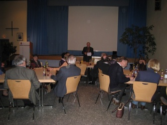 Zu ihrer letzten Vollversammlung trafen sich die Mitglieder des Dekanatsrates Würzburg-Stadt am Mittwochabend, 10. März 2010, im Matthias-Ehrenfried-Haus. Es galt Rückschau zu halten und Dank zu sagen. Karl-Peter Büttner ließ visuell die letzten vier Jahre Revue passieren. Neben gesellschaftspolitischen Themen wie dem Umgang mit benachteiligten Jugendlichen, Europa im Wandel - unsere Gesellschaft und ihre Werte, der Besuch im jüdischen Zentraum "Shalom Europa" oder einer Podiumsdiskussion mit Oberbürgermeister Georg Rosenthal zur Stadtentwicklung Würzburgs, war der große Umstrukturierungsprozess in unserer Diözese Schwerpunkt der Konferenzen. Traditionell lud der Dekanatsrat zum ökumenischen Bittgang auf die Festung und zur Schiffswallfahrt nach Retzbach ein. Dekan Erhard Kroth dankte Karl-Peter Büttner, der über drei Wahlperioden den Vorsitz inne hatte. Eingerahmt war der Abend durch eine Eucharistiefeier in Stift Haug und einem gemeinsamen Abendessen.
