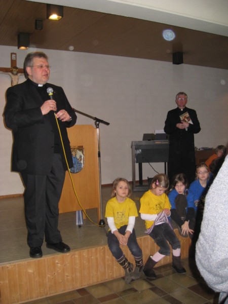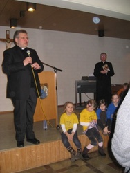 In die Zielgerade gehen die Errichtungen der Pfarreiengemeinschaften auch in den drei Würzburger Dekanaten. Bis zum ersten Fastensonntag soll dieser Prozess in der ganzen Diözese abgeschlossen sein. Wurde am 10. Januar die Pfarreiengemeinschaft Würzburg Innenstadt durch Seelsorgeamtsleiter, Domkapitular Hans Herderich, in einem festlichen Gottesdienst im Dom errichtet, und schließt sich am 24. Januar die Pfarreiengemeinschaft Fährbrück im Dekanat Würzburg rechts des Mains an, so waren es am 17. Januar die Pfarreiengemeinschaften "Hl. Benedikt zwischen Tauber und Main" (Helmstadt, Holzkirchen, Neubrunn) und "Heiliger Franziskus im Maintal" im Dekanat Würzburg links des Mains. In einem lebendigen Gottesdienst, den Domkapitular Dietrich Seidel leitete, brachten Vertreter der Pfarreien Zell, Margetshöchheim, Erlabrunn und dem Mutterhaus der Oberzeller Franziskanerinnen Symbole zum Altar, die die Gemeinden charakterisieren. Kinder zogen bunte Bänder durch die Kirche, und drückten damit die neue Gemeinsamkeit aus. Begleitet von der Blaskapelle Zell zogen die zahlreichen Gottesdienstteilnehmer bei Nieselregen durch die schneevermatschte Hauptstraße zum Zeller Pfarrzentrum. Beim dortigen Empfang würdigte Bürgermeisterin Anita Feuerbach, auch im Namen ihrer beiden Bürgermeisterkollegen, die Errichtung der Pfarreiengemeinschaft. Eine Vertreterin der evangelischen Gemeinde ludt zur gemeinsamen Wallfahrt auf dem "Franziskusweg" in die Rhön ein. Generaloberin Schwester Veridiana Dürr erweiterte diesen Vorschlag mit einer Reise auf den Spuren des Heiligen Franziskus nach Assisi. Wieder mehr wurde deutlich, wie sehr Kirche im Umbruch ist. Eine veränderte, zukunftsweisende Seelsorge wird die Antwort auf diese Neustrukturierungen sein.
