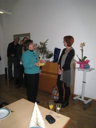 Mit einem weinenden Herzen wurde am Donnerstag, 16. Dezember 2010, die "gute Fee" des Diözesanbüros, Frau Elisabeth Fiederling, verabschiedet, die ab 1. Januar ihre Altersteilzeit beginnt. Frau Fiederling war 35 Jahre als Reinigungsfachkraft im Dienst der Diözese Würzburg tätig; zunächst im Kilianshaus, danach im Kilianeum. Der Direktor des Bischöflichen Jugendamtes Thomas Eschenbacher sah in der langen Dienstzugehörigkeit ein Stück gelebte Kontinuität und Treue. "Man kann auch bei der Kirche 35 Jahre lang arbeiten und behält sein jugendliches Aussehen". So konnte Pfarrer Eschenbacher schwer glauben, dass Frau Fiederling fast das Rentenalter erreicht habe. Seit dem Umzug des Diözesanbüros im Jahr 2005 ins Kilianeum, genossen die Mitarbeiterinnen die Zuverlässigkeit und menschliche Herzlichkeit von Elisabeth Fiederling.