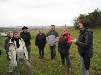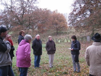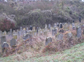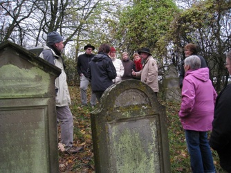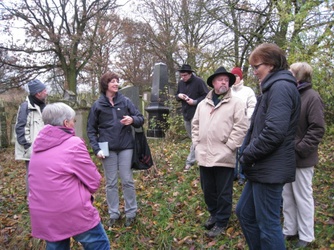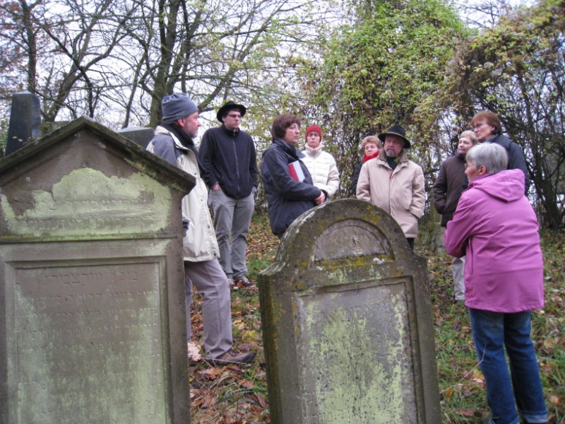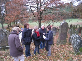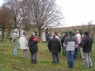 Auf die Spuren jüdischer Bürger in Unterfranken begaben sich Kommunionhelfer, Lektoren und Gottesdienstbeauftragte bei einem Besuch des jüdischen Friedhofes in Schwanfeld am Samstag, 14. November 2009. Von 1579 bis ins Jahr 1940 bestatteten die Schwanfelder Juden, wie ihre Glaubesgesgeschwister aus Estenfeld, Dettelbach, Bibergau, Gochsheim, Rimpar, Schwebheim und Arnstein, ihre Toten in diesem "Haus des Ewigen Lebens", wie Petra Schmid, die die Gruppe führte, einen jeden jüdischen Friedhof bezeichnet. Das Grab eines Juden ist für die Ewigkeit angelegt, das heißt, es wird nicht mehr aufgelöst. So bedecken 2.400 Gräber das 2 ha große Tal. Wie jeder Judenfriedhof in Deutschland, wurde auch der hiesige im Jahr 1938 unter Naturschutz gestellt. Petra Schmid erklärte nicht nur die Trauerriten im Judentun, sondern führte darüber hinaus in das alltägliche jüdische Leben ein. Im Anschluss an den Friedhofsbesuch wanderten die TeilnehmerInnen nach Untereisenheim, wo der Nachmittag mit einer Einkehr abgerundet wurde.