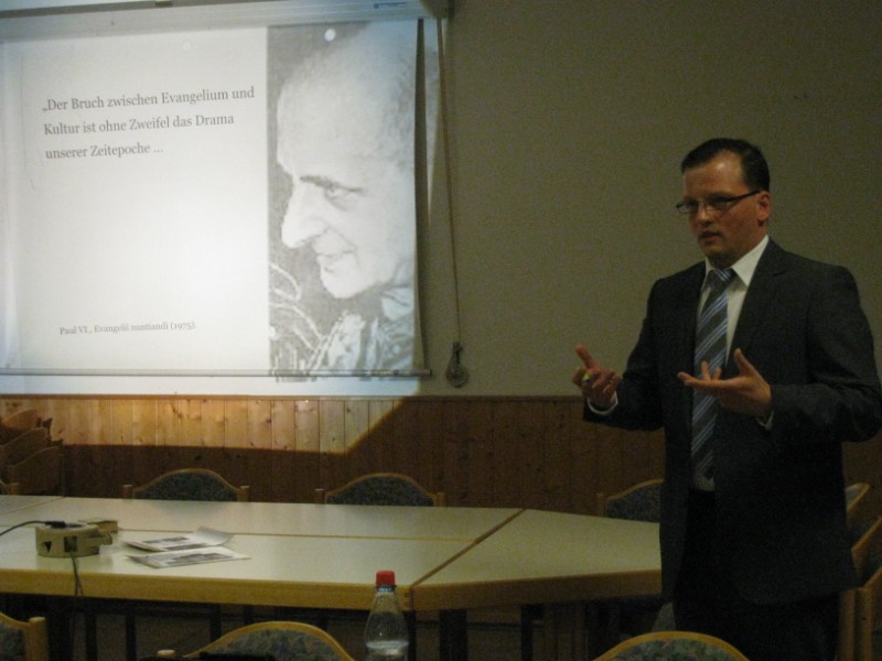 "Auch die säkulare Kultur ist fähig, das Evangelium aufzunehmen". Mit dieser These konfrontierte Dr. Johannes Först , Assistent am Lehrstuhl für Pastoraltheologie an der Universität Regensburg, die Delegierten des Dekanatsrates Würzburg links des Mains bei ihrer Frühjahrs-Vollversammlung am 24. März 2011 in Höchberg. Viele meinen, Religion, Glaube und Kirche gehen in der Moderne ihrem Ende entgegen. Die Weitergabe des Glaubens an die nächste Generation scheint gefährdet. Dr. Först warb zu einer Rückkehr zur historischen Realität.. Auch in der "guten alten Zeit" haben lediglich 50 % der Katholiken des Sonntagsgottesdienst besucht. Ein Phänomen, das sich in der säkularen Gesellschaft nicht erklären lässt, ist die Tatsache, dass nach wie vor 35 % aller Paare kirchlich heiraten und 90 % aller Verstorbenen kirchlich beerdigt werden. Auch heute erfahren Menschen durch Religion und Kirche Geborgenheit und Halt. Ihr Leben wird strukturiert durch kirchliche Feiern und das Kirchenjahr. Der Referent warnte, Christen, die nicht jeden Sonntag an der Feier des Gottesdienstes teilnehmen, defizitär zu behandeln. Vielmehr gilt es, den Glauben biographisch zu deuten. Die Geburt eines Kindes, das Eigehen einer Lebenspartnerschaft, aber auch Arbeitslosigkeit und Pflegebedürftigkeit sind Wendemarken im Leben eines Menschen, die religiös begleitet werden können. Es gilt, "alle Anstrengungen zu unternehmen, um die gegenwärtige Kultur zu evangelisieren" (Papst Paul VI).