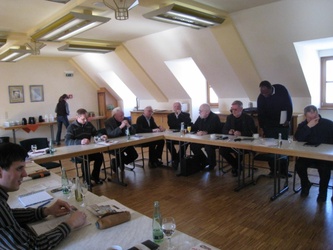 Mit dem Thema "Familien in Krisen" beschäftigten sich die Pfarrer und hauptamtlichen pastoralen MitarbeiterInnen des Dekanates Würzburg rechts des Mains bei ihrem Studientag am Dienstag, dem 9. März 2010, im St. Markushof in Gadheim. Zu Beginn zeigte Wiltrud Teske die vielfältigen Angebote zur Unterstützung für Familien des Sozialdienstes katholischer Frauen (Skf) auf. Sie fasste die Aufgaben ihrer Beratungsstelle in dem Satz zusammen "Leitseil sein im Nebel des Lebens, zur Orientierung und zum Festhalten". Die Arbeit im Jugendamt stellten Evelyne Bordon und Melanie Kuhn vor. Als Dienststelle des Landratsamtes Würzburg sind sie für 160.000 Erwachsene zuständig und haben vorrangig das Wohl des Kindes im Blick. Ehe und Familie stehen unter dem besonderen Schutz der staatlichen Ordnung. Der Nachmittag war gfüllt mit den finanziellen Engpässen, in die Mann/Frau schnell kommen kann. Ein letzter Anker ist für viele Verschuldete die Schuldnerberatung der Christophorus-Gesellschaft Würzburg. "Objektiv können wir jedem helfen; es gibt keine aussichtslos erscheinende Situation", resümierte deren Geschäftsführer Günther Purlein. Etwa 20 Beratungen führen seine Mitarbeiterinnen und Mitarbeiter täglich durch. Und in den Alltag eines Gerichtsvollziehers führte Willibald Meder ein, der seinen Beruf als Balanceakt zwischen Vollstrecker und Vermittler sieht. Fazit am Ende des Tages: Die Unterstützung von Familien und die Begleitung von Kindern, Jugendlichen und Eltern in Krisen und Not sind zentrale Anliegen unseres christlichen Glaubens.