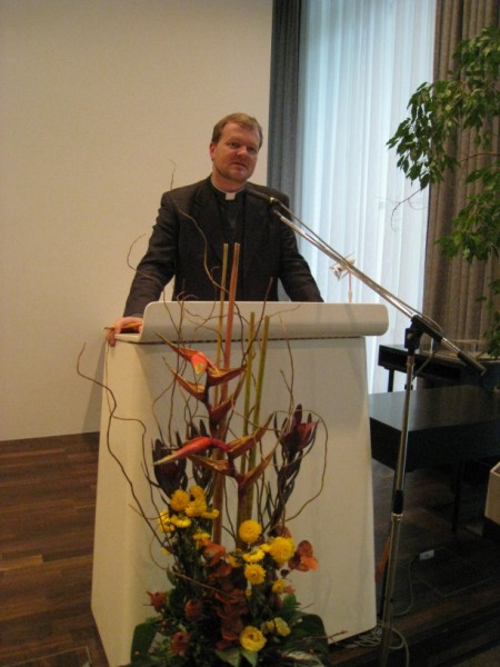 Zum ersten Mal seit ihrer Gründung im Juni dieses Jahres trafen sich am Montag, 23. November 2009, im St. Burkardushaus die Ordensschwestern, Frauen und Männer, die täglich in der Kreuzkrypta des Neumünsters vor dem ausgesetzten Allerheiligsten Anbetung halten. In seinem spirituellen Impuls ging Dompfarrer Dr. Jürgen Vorndran auf die Bedeutung der Psalmen im persönlichen Beten ein. So bergen die 150 Psalmen des Alten Testamentes alle menschlichen Gefühlssituationen. In ihnen lädt Jesus selbst ein, sich in die große Schar der Beter von 3000 Jahren einzureihen. Neben den verschiedenen praktischen Fragen ging es auch darum, einen Namen für diesen Kreis der 170 Ehrenamtlichen zu finden, die mit ihrem Gebet die Tradition fortsetzen, zu der Bischof Julius Döpfner in den Nachkriegsjahren den Anstoß gegeben hatte. ADORAMUS, übersetzt "wir beten an", wird sich der Kreis in Zukunft nennen. Nach einer Führung durch das neu gestaltete Neumünster endete der Nachmittag mit der Abendmesse, ebenfalls im Neumünster.