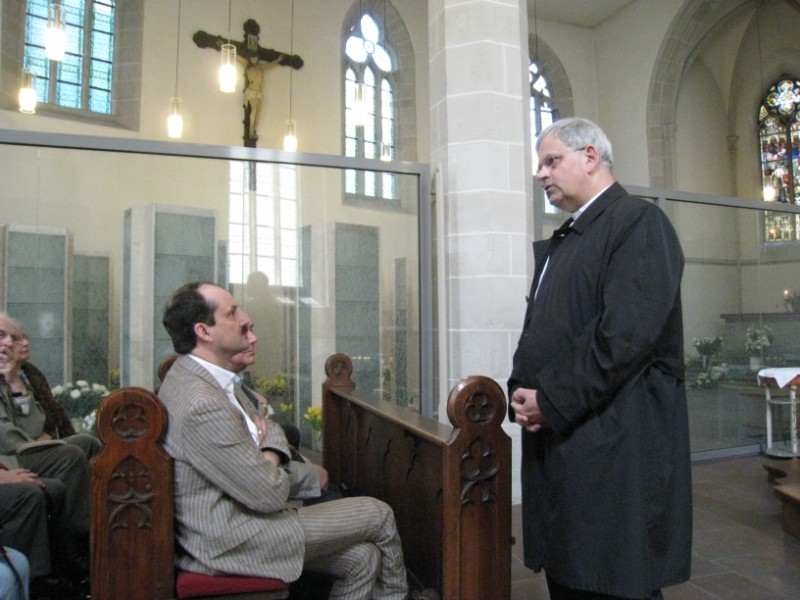 Wie sehr Kirche das Ohr am Menschen hat, erlebten 35 Kommunionhelfer, Lektoren und Gottesdienstbeauftragte bei einer Fortbildung am 7. Mai 2011 in Erfurt. Dort, in der thürinischen Diaspora, leben etwa 25 % Christen. Erfurt selbst zählt 8 % Katholiken. Doch auch Nichtgetaufte lassen sich auf die Sinndeutung der Kirchen ein, vor allem, wenn sie die Höhen und Tiefen ihres Lebens erfahren. Das geschieht an Heiligabend; wenn man krank ist oder ein Familienmitglied stirbt. Wenn man sich verliebt und wenn Jugendliche spüren, dass sie erwachsen werden. Am Nachmittag stand eine Begegnung mit Weihbischof Dr. Reinhard Hauke auf dem Programm, der lange Jahre als Dompfarrer in Erfurt wirkte. In verschiedenen liturgischen Feiern hat er diese Erfahrungen der Sinnsuche aufgegriffen. So besuchen Jahr für Jahr hunderte Nichtchristen das nächtliche Weihnachtslob an Heiligabend im Erfurter Dom. Seit 1998 gibt es die "Lebenswendefeier" für Jugendliche ohne Konfession. Am Valentinstag sind alle Verliebte und Liebenden zu einem ökumenischen Segnungsgottesdienst eingeladen. Den Veränderungen im Begräbnisritual begegnete man mit der Errichtung eines Kolumbariums in der Erfurter Allerheiligenkirche. Seit September 2007 besteht die Möglichkeiten für Christen und Nichtchristen, sich dort bestatten zu lassen und die Trauerfeier zu halten. Im Hintergrund dieser Angebote steht die Erfahrung, dass jeder Mensch -sei er nun Christ oder nicht- Fragen hat, die den eigenen Horizont übersteigen. Am Vormittag stellte Direktor Dr. Hubertus Schönemann die "Katholische Arbeitsstelle für missionarische Pastoral" vor. Dieses, von der Deutschen Bischofskonferenz im Januar letzten Jahres eingerichtete Institut, hat die Aufgabe, die Weiterentwicklung des kirchlichen Zeugnisses in der Welt von heute zu unterstützen. Dr. Schönemann vesteht seinen Arbeitsbereich als "Gedankenschmiede", Kirche weiterzuentwickeln und Gotteserfahrungen aufzuschließen für alle, die "außen stehen". Er machte den Gästen aus Unterfranken Mut, die Neustrukturierung der Pastoral als Chance zu sehen, auch kommenden Generationen das Evangelium zu erschließen.