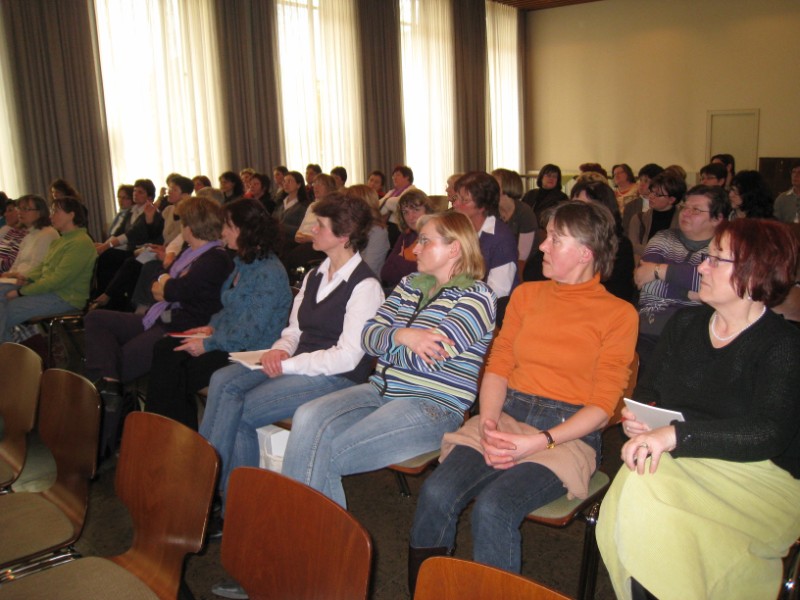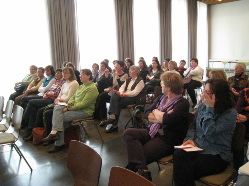 "Was ist zu beachten, wenn Brautleute im Ausland heiraten möchten? Gibt es auch für Geschiedene die Möglichkeit, wieder katholisch zu heiraten? Muss ein Taufpate katholisch sein?" Um solche und ähnliche kirchenrechtliche Fragen ging es bei einer Fortbildung für Pfarrsekretärinnen der drei Würzburger Dekanate am Dienstag, 16. März 2010, im St. Burkardushaus. Domkapitular Dr. Stefan Rambacher, Offizial der Diözese Würzburg, konnte den 50 Teilnehmerinnen vermitteln, wie wichtig es ist, vor der Spendung eines Sakramentes, wie zum Beispiel der Ehe oder Taufe, bestimmte Regelungen zu beachten und die Ratsuchenden darüber aufzuklären. Denn das Kirchenrecht der katholischen Kirche regelt vor allem auch zwischenmenschliche Beziehungen. Als erste Ansprechpartnerin im Pfarrbüro ist es den Pfarrsekretärinnen ein Anliegen, kompetent Ausfkunft geben zu können. Der Nachmittag war viel zu kurz für die vielen Fragen und Anliegen, sodass es im Herbst eine Fortsetzung geben soll.