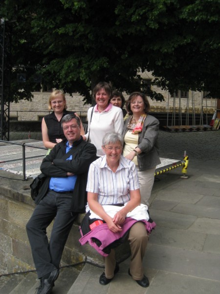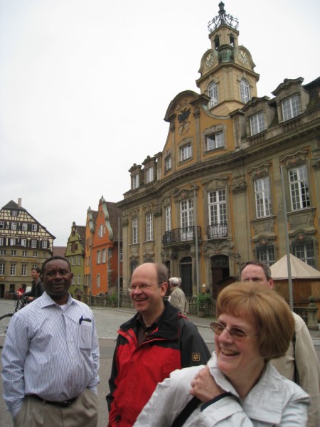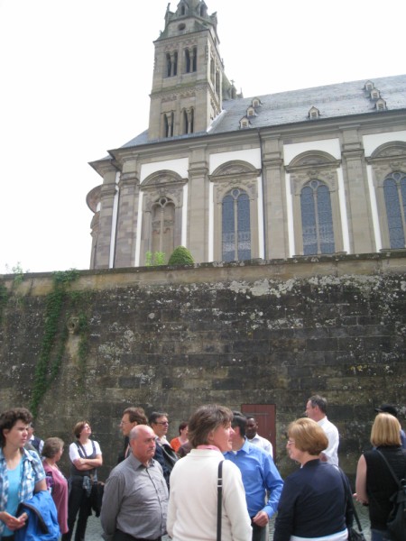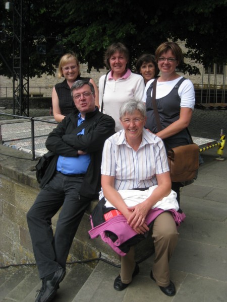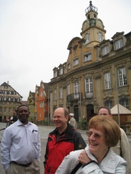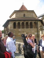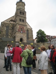 In die alte Salz- und Handelsstadt Schwäbisch Hall zog es die Pfarrer und hauptamtlichen Mitarbeiterinnen und Mitarbeiter am 15. Juni 2010. Bei einer Stadtführung ist die reiche Geschichte der ehemaligen Freien Reichsstadt lebendig geworden. Bereits 500 v. Chr. bis ins Jahr 1924 wurde in Schwäbisch Hall Salz produziert. Dem weißen Gold des Mittelalters verdankt die Stadt ihr heutiges Aussehen. Zu den Hauptsehenswürdigkeiten zählt zweifellos die Kirche St. Michael mit ihrer 53-stufigen Freitreppe. Die romanisch-gotische Kirche birgt in ihrem Innern viele Kunstwerke, die die früh eingeführte Reformation überlebten. Die Mittagspause nutzten viele, um die Sammlung Alte Meister in der Johanniterhalle zu bestaunen; wie die Kunsthalle für Moderne, Geschenk des Mäzens Reinhold Würth an die Stadt Schwäbisch Hall. Am Nachmittag stand die "Gottesburg" Comburg, ehemaliges Benediktinerkloster und Bollwerk der Ritterschaft, auf dem Programm. Sie erhebt sich wie eine Krone über der Stadt. Die Stiftskirche birgt mit dem romanischen Radleuchter und dem vergoldeten Antependium einen einzigartigen Kunstschatz. Nach der gesungenen Vesper ging es durch das frühsommerliche Hohenloher Land ins Taubertal, wo der Tag im Weinort Beckstein ausklang.