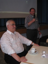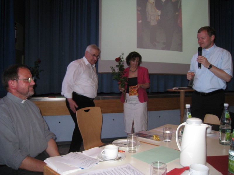Diese Ratschläge gab Erhard Kroth den Seelsorgerinnen und Seelsorgern des Dekanates Würzburg Stadt bei seiner Verabschiedungsfeier am Dienstag, dem 29. Juni 2010, mit auf den Weg. Viele hatten sich in seiner Pfarrkirche Stift Haug und anschließend im Matthias-Ehrenfried-Haus eingefunden, um ihm Dank zu sagen. Wichtige Strukturreformen fielen in die Amtszeit von Erhard Kroth. Aber auch neue "pastorale Stützpunkte", wie der i-Punkt Kirche und das Diözesanbüro, wurden eingerichtet. Eine Bildershow rief so manches Ereignis der vergangenen zehn Jahre in Erinnerung. Dompfarrer Dr. Jürgen Vorndran, ab 1. Juli 2010 Dekan in Würzburg Stadt , verabschiedete Dekan Erhard Kroth und dessen Stellvertreter Josef Treutlein mit herzlichen Worten und Präsenten. Dekan Kroth dankte allen, die ihn in den zehn Jahren unterstützt haben. Ein gemeinsames Lied rundete den Nachmittag ab.