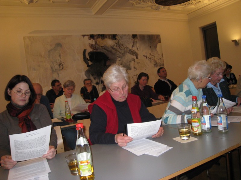 Mit den unterschiedlichen Bibel-Übersetzungen setzten sich 26 Kommunionhelfer, Lektoren und Gottesdienstbeauftragte am Donnerstagabend, 25. Februar 2010, im Exerzitienhaus Himmelspforten auseinander. Der Referent, Studentenpfarrer Burkhard Hose, ermunterte, durchaus, etwa zur Vorbereitung auf einen Gottesdienst, andere Bibel-Übersetzungen anzuschauen. Die heute gängigen Bibel-Übersetzungen sind in zwei Gruppen zu teilen. Orientieren sich die einen an der hebräischen Ausgangssprache, tun dies die anderen an der Sprache der Zeit. Im praktischen Vergleich von vier Bibel-Übersetzungen konnten die TeilnehmerInnen ihre eigenen Erfahrungen mit den Texten machen. Dabei wuchs die Erkenntnis, dass jede Übersetzung ein Akt der der Interpretation ist.