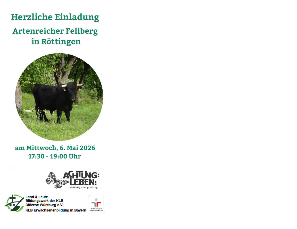 Nähere Informationen und Anmeldung unter 0931-38663721 oder klb@bistum-wuerzburg.de.