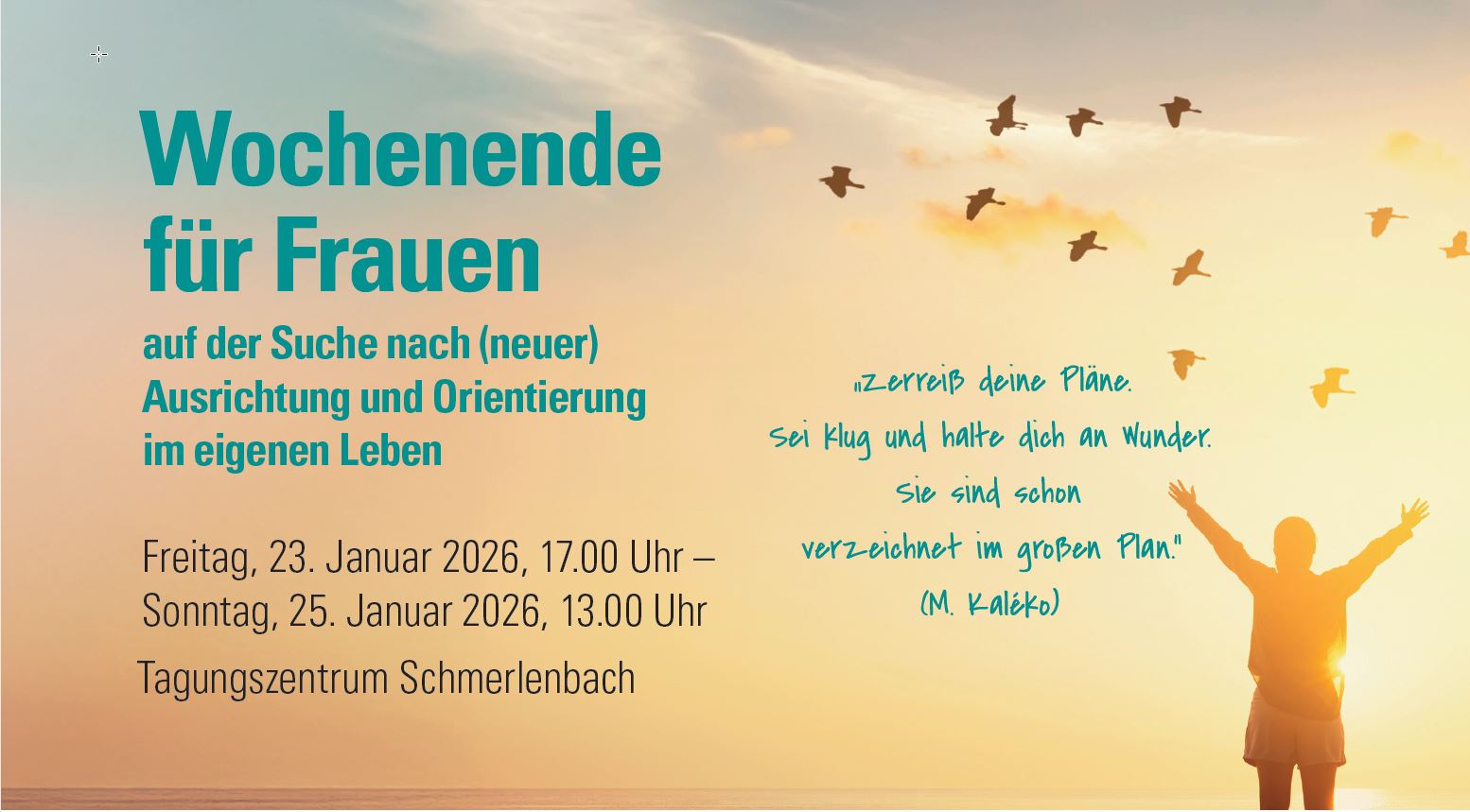 Das Leben ist ein wertvolles Geschenk. Persönliche und berufliche Routinen des Alltags, viele Verpflichtungen und Termine oder auch von außen zugeschriebene Rollen lassen uns manchmal gar nicht bei uns selbst sein mit unseren eigenen Bedürfnissen, Wünschen und Plänen. Das Leben zieht flüchtig vorbei. Und manchmal zeigt es sich auch von einer Seite, die wir so gar nicht erwartet und vermutet hätten. Die Auszeit dient dazu, Abstand vom Alltäglichen zu nehmen, die Perspektive zu wechseln und von außen auf mein eigenes Leben zu blicken. Auf die eigene Lebensgeschichte, dich mich zu der Frau gemacht hat, die ich heute bin. Auf das, was ich brauche, mir erhoffe und wünsche. Auf das, was mir Richtung, Halt und Orientierung gibt. Mit ausreichend Zeit spüren wir in uns hinein und vergewissern uns der persönlichen und auch spirituellen Grundhaltung durch Impulse, Austausch und Körperübungen. Offen, gestärkt und inspiriert gehen wir zurück in das eigene Lebensumfeld.